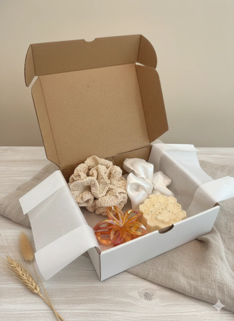 Descubrí nuestro Pack Natural, el regalo ideal que combina cuidado y belleza de manera artesanal. Este pack incluye un jabón de miel artesanal, reconocido por sus propiedades hidratantes y nutritivas para la piel. Además, trae una esponja exfoliante tejida al crochet de algodón, perfecta para renovar tu piel suavemente. Completan el set un scrunchie de raso y una práctica traba para el pelo, accesorios delicados y funcionales. Ideal para mimarte o sorprender a alguien especial con un detalle único y natural.