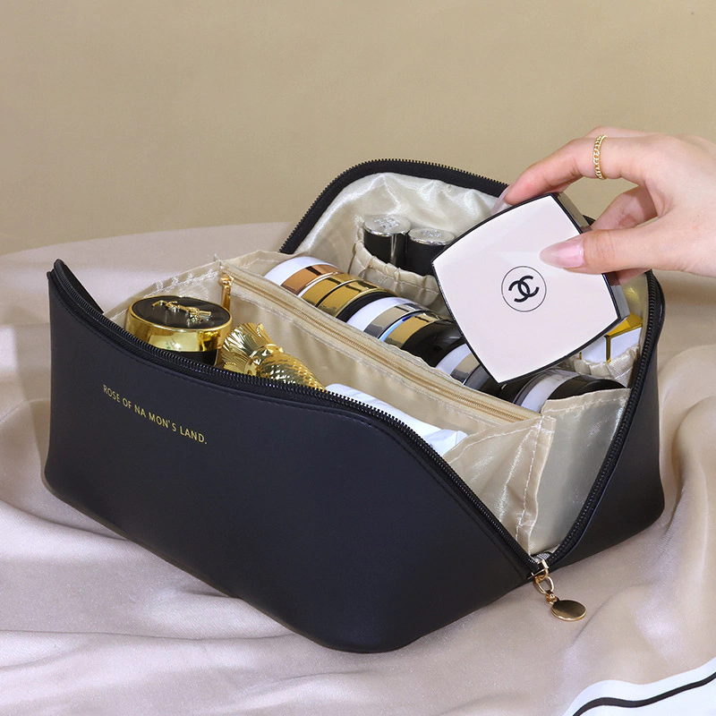 Descubrí el Porta cosmético premium, una bolsa de viaje hecha con tela de cuero PU de primera calidad. Su diseño impermeable y resistente al desgaste protege todos tus productos de maquillaje y cuidado personal.